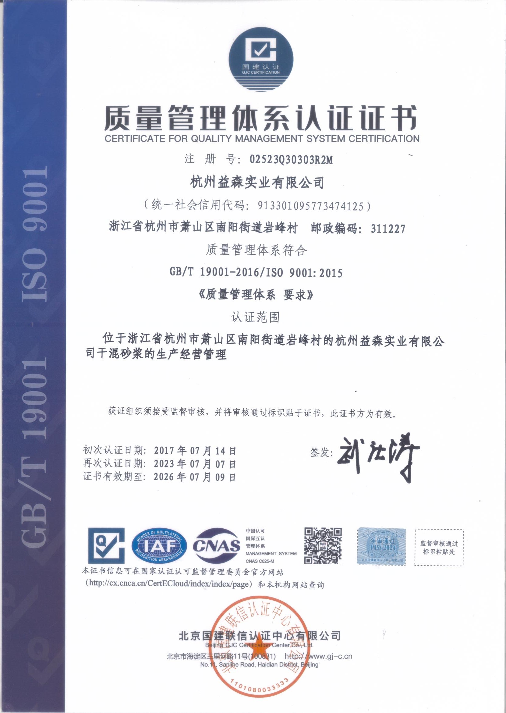 產(chǎn)品認(rèn)證證書(shū)(干混地面砂漿)