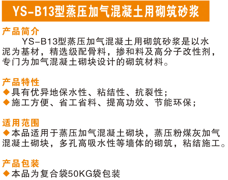 YB-B13型蒸壓加氣混凝土用砌筑砂漿