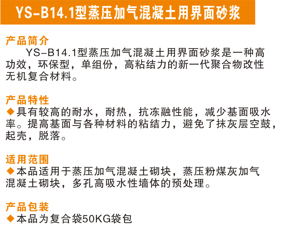 YB-B14.1型蒸壓加氣混凝土用界面砂漿